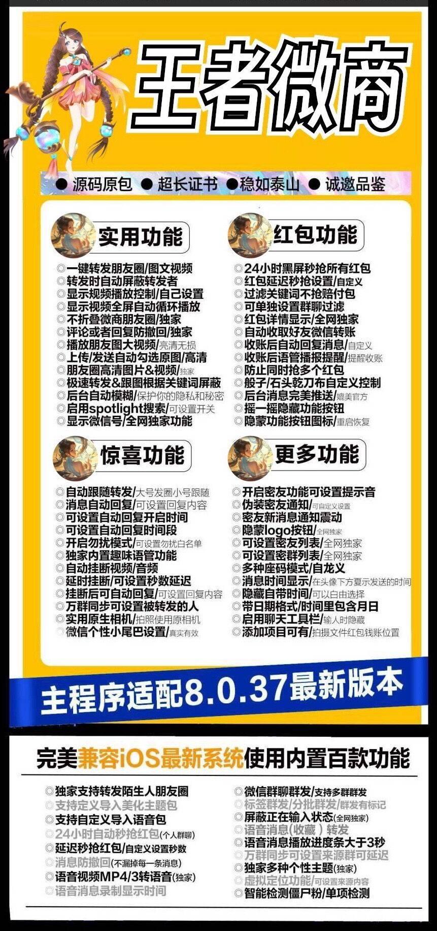 除此之外,苹果王者微商还提供了屏蔽正在输入状态、24小时自动秒抢红包、语音消息播放进度条大于3秒、语音消息录制显示时间等特色功能,让用户在使用微信时更加便捷和高效。