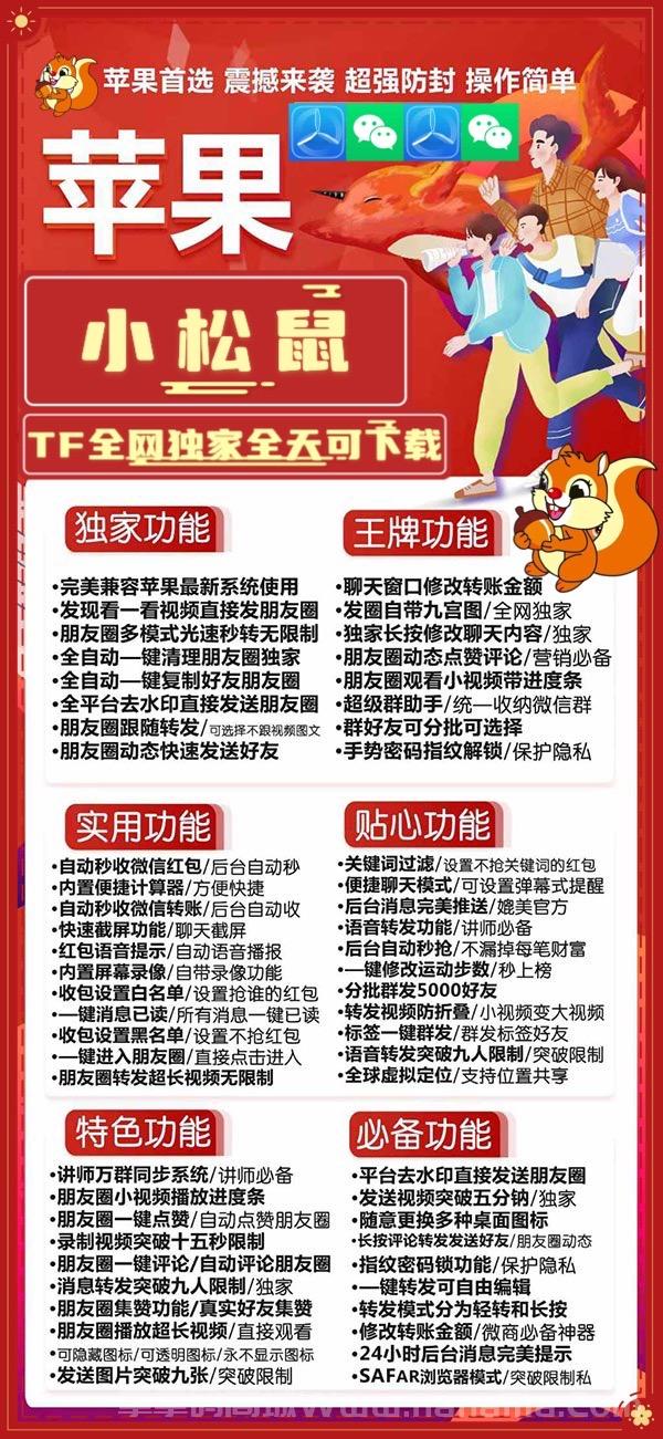 而苹果小松鼠微信多开一键转发软件还提供超级群助手,可以统一收纳微信群,让用户轻松管理群组。朋友圈跟随转发功能更是让用户在保持个性的同时,享受最大限度的分享乐趣。