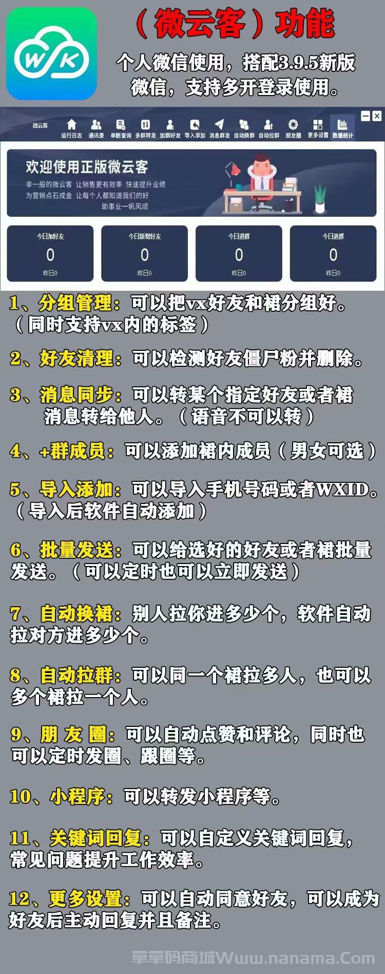 9、数据统计,加好友数,新增好友数,进群数,退群数长久稳定,功能多多,稳定流畅,邀您共鉴