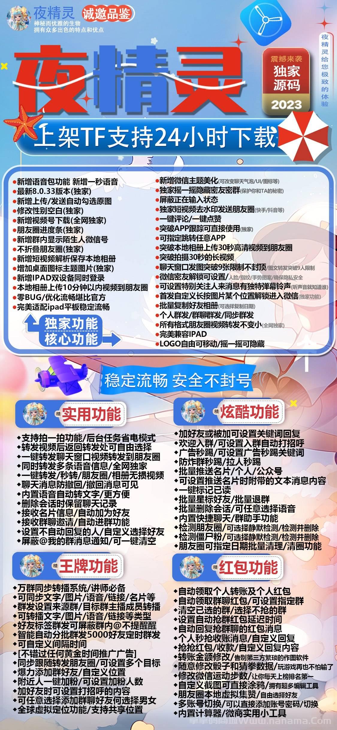 夜精灵,一款傲然登场的微信多开一键转发软件,为广大微信用户带来了无尽的惊喜与便利。新上架的TF版本更是引起了广泛的关注,它支持24小时下载,让用户随时随地畅享其独特魅力。